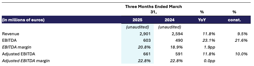 - – Adjusted EBITDA of €661 million increased 11.8% year-over-year, or 10.0% in constant currency, and Adjusted EBITDA margin remained consistent at 22.8%.
