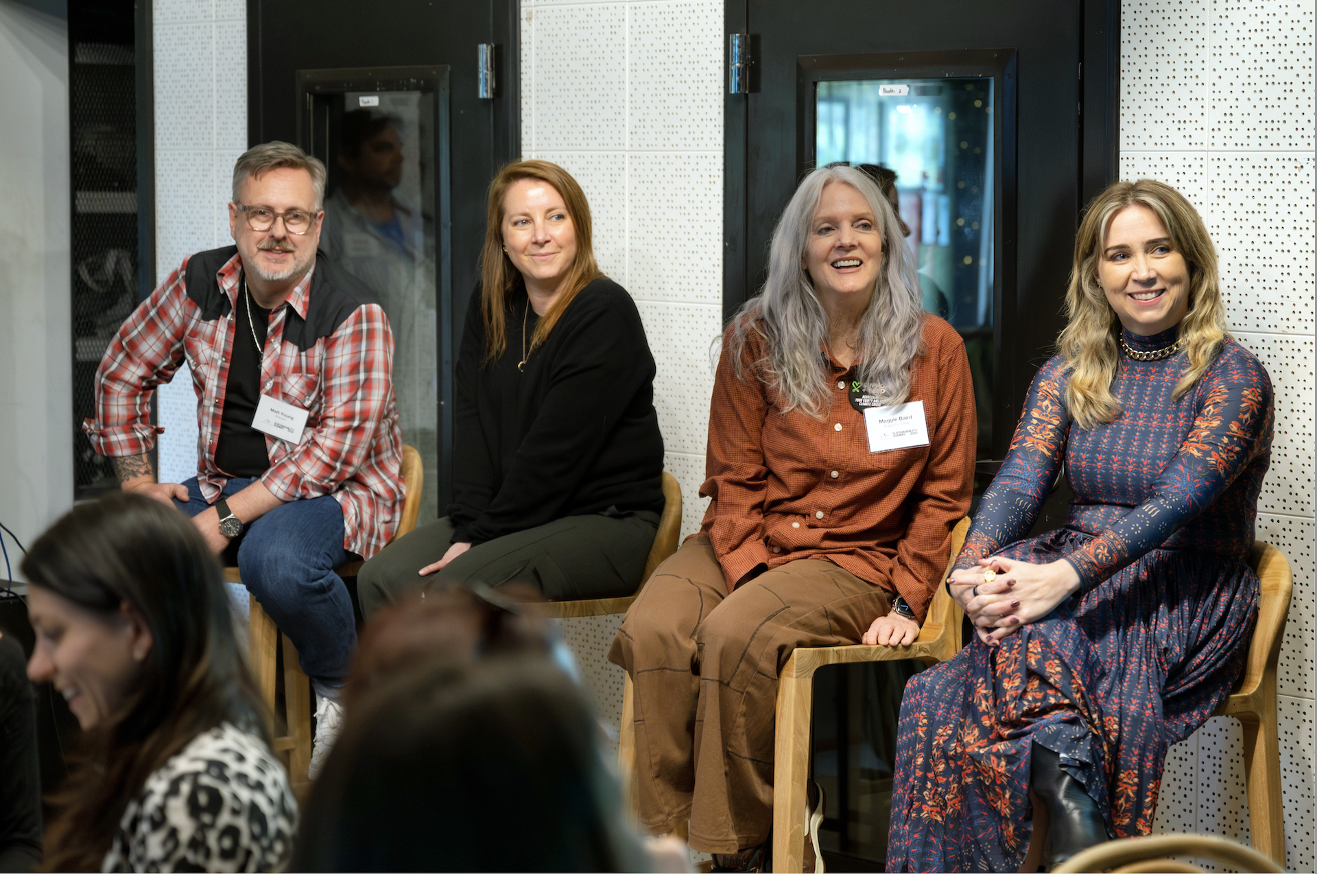 Photo from UMG’s most recent Sustainability Summit in Nashville in early April that includes left to right: Matt Young (President, Bravado), Susan Mazo (EVP of Global Communications, Universal Music Group), Maggie Baird (mother of Billie Eilish), and Dylan Siegler (SVP, Head of Sustainability at Universal Music Group). Photo by R. Weber