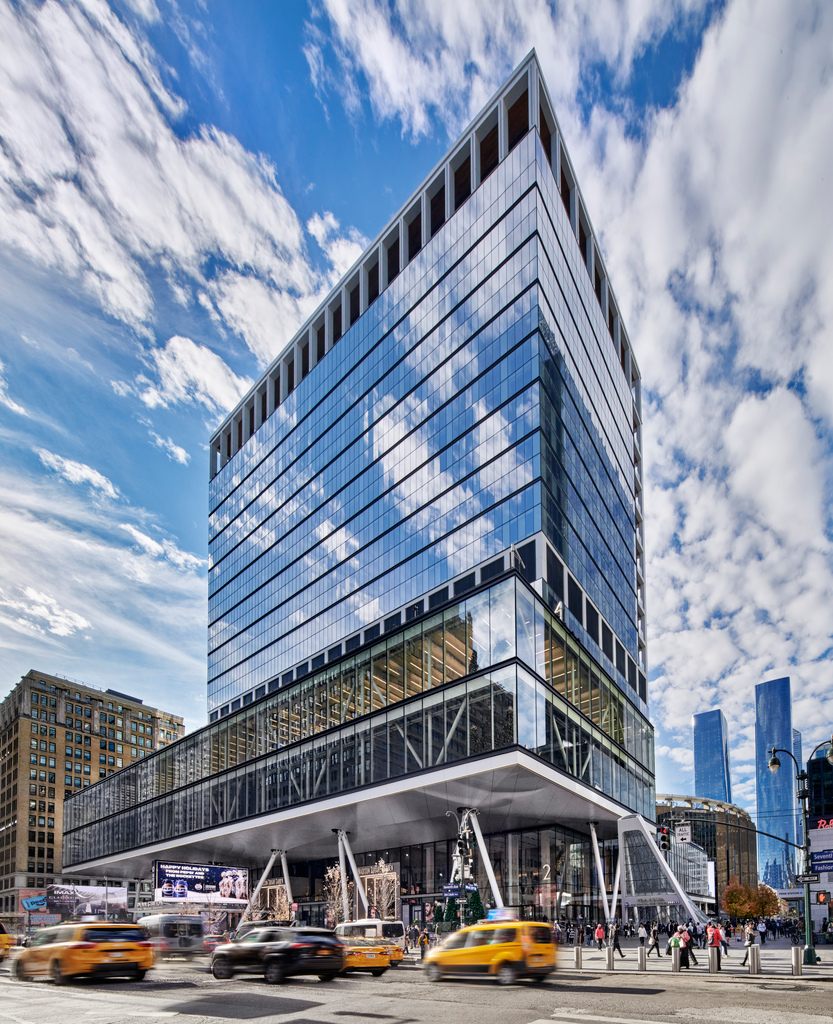 As part of its recently completed $750-million redevelopment of PENN 2, Vornado installed a highly efficient modern glass curtain wall; a striking triple-height lobby; 16 distinctive double-height outdoor tenant loggias; and The Bustle. PENN 2 will incorporate 30,000 square feet of curated retail, including the Dynamo Room, a 7,100 square foot full-service restaurant and bar from Sunday Hospitality. The building also features 72,000 square feet of outdoor green spaces; The Perch, a rooftop glass pavilion and event space that opens onto a lushly landscaped 17,000-square- foot private green space available to all tenants; and a 280-seat Town Hall suspended above Plaza33. PENN 2 is also the headquarters location for Madison Square Garden and Major League Soccer.